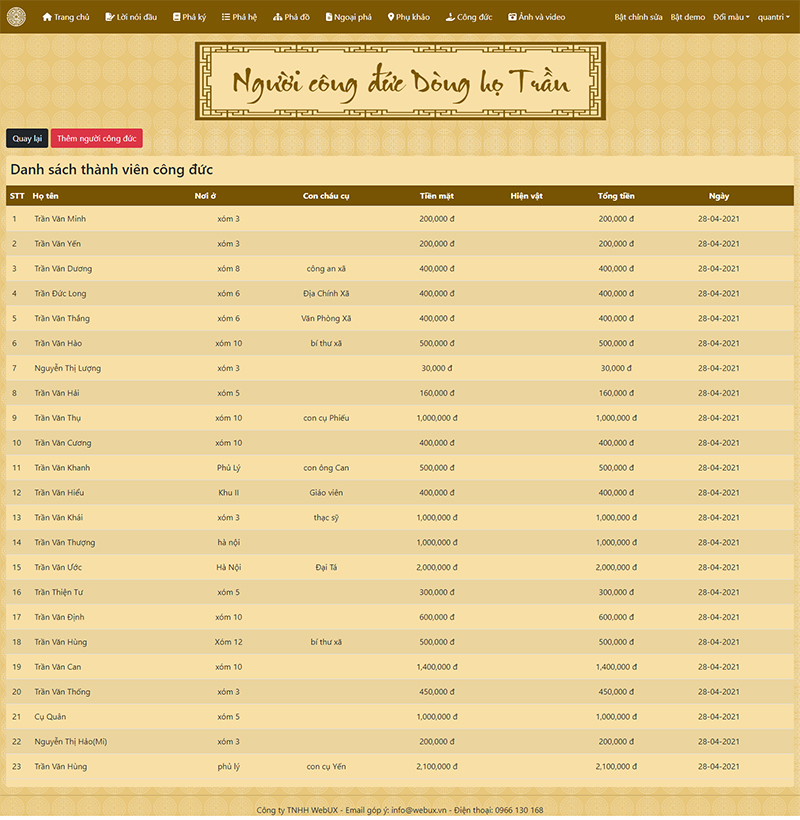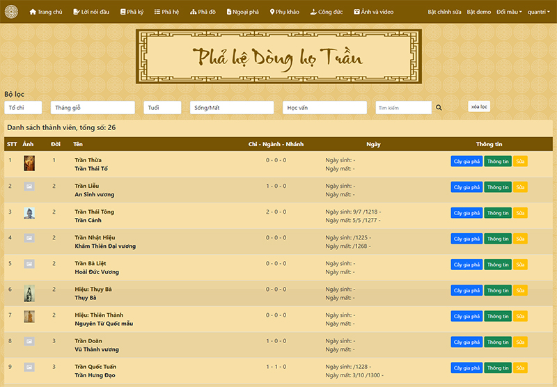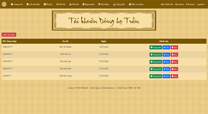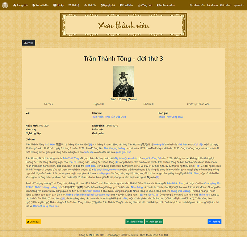 Hệ thống quản trị dành riêng cho gia phả của dòng họ